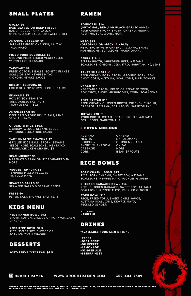 Welcome to Orochi Ramen, a hidden gem in Clermont, FL, where authentic Japanese flavors come alive. Nestled at 781 State Rte 50, this delightful eatery has earned rave reviews for its diverse menu and inviting atmosphere.