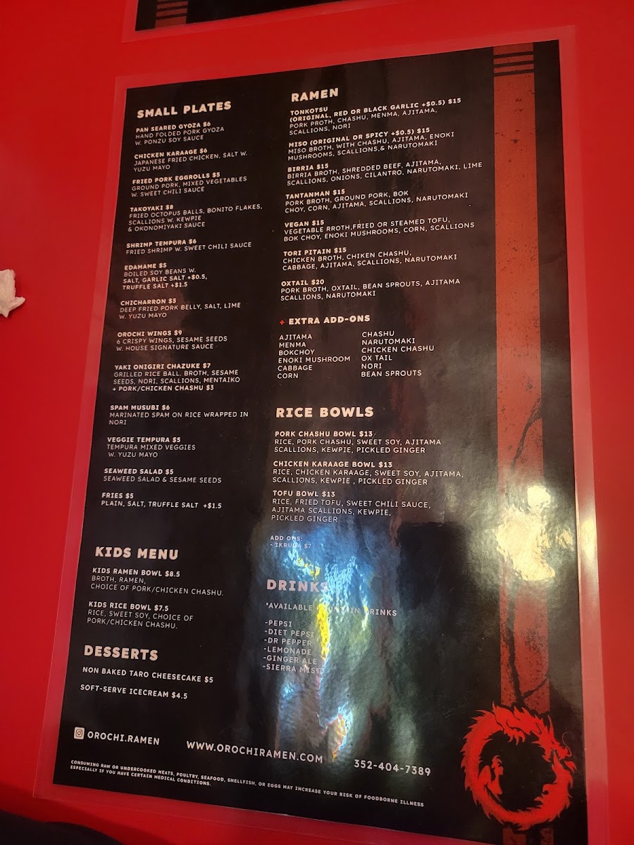 With friendly service and a cozy ambiance, Orochi Ramen promises a memorable dining experience where every dish is crafted with love and high-quality ingredients.
